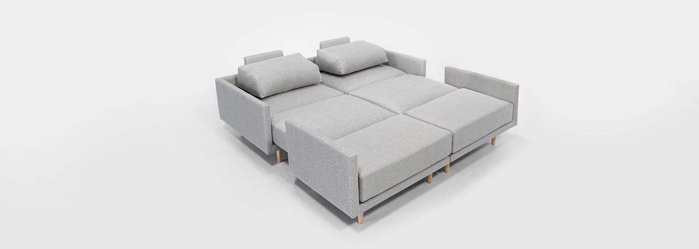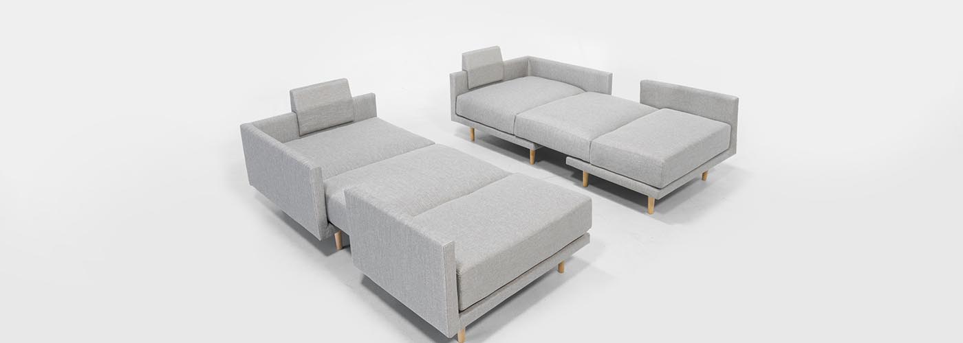 Clooods 4S is not just a sofa. With a few movements, you can transform it into many different positions. Move the slider to see some positions.